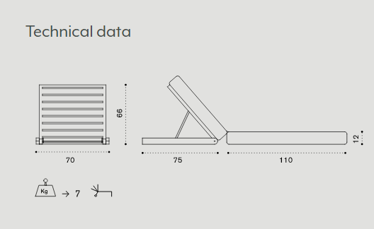 Simply comfortable and elegant, Sandy has an adjustable back in teakwood, its mattress is covered in waterproof synthetic fabric.