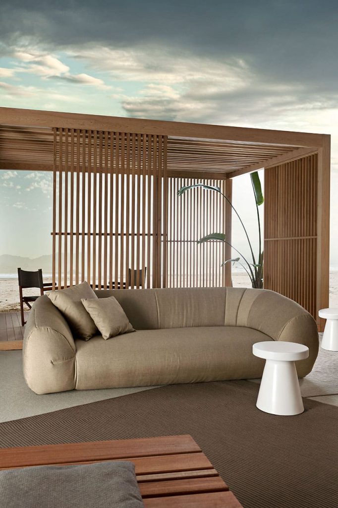 A soft and sophisticated seat taking inspiration from the stones smoothened by the winds along the coast meets the nuances of an elegant landscape portrayed in the outdoor most sensational composition. An experience that takes the body to a natural experience.