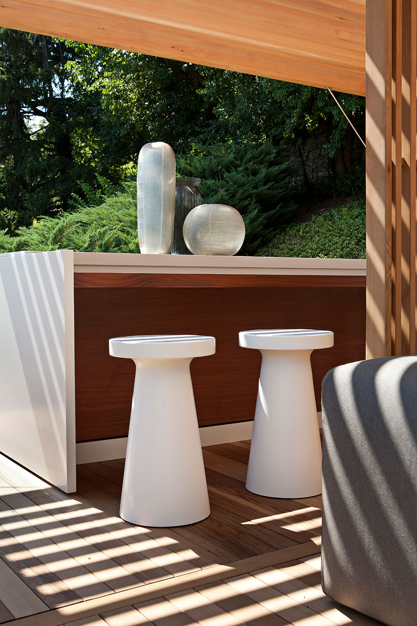 Handcrafted from solid Red Cedar/Candy Red Cedar/Mahogany/Corian? by DuPont and inlaid, Zen Stool adapts to any environment adding a touch of refined design.