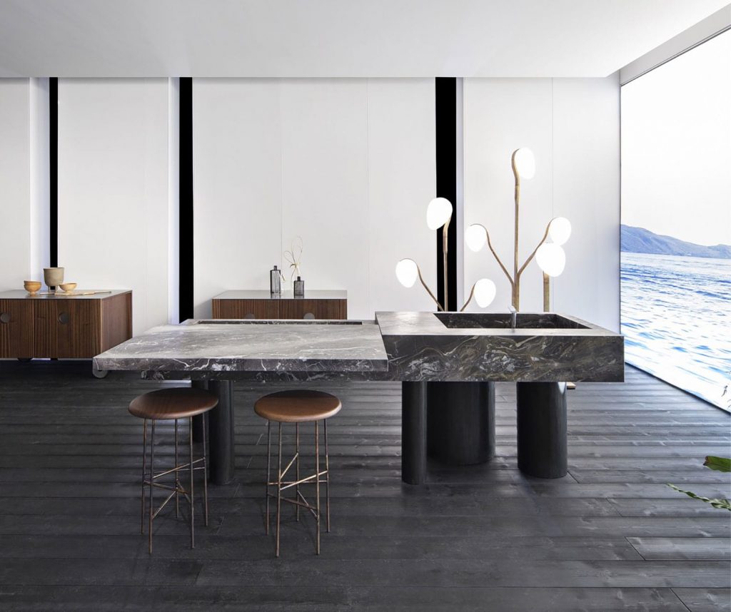 10th Kitchen is characterized by timeless elegance and material refinement thanks to a noble use of marble.