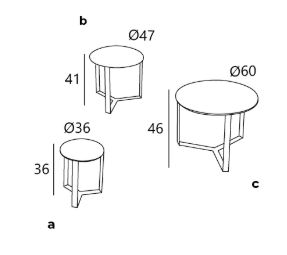 TRIS is a set of three side stackable metal tables with a round top and a base made up of three thin legs whose silhouette creates a game of solids and voids with perceptible elegance. They can also be purchased individually in the three sizes of the ?36, ?47 or ?60 top and thanks to the numerous finish variants: manual corten, burnished or bronzed or diamond or satin nickel, bronze, brass and lead, it is suitable for use in public or private spaces.