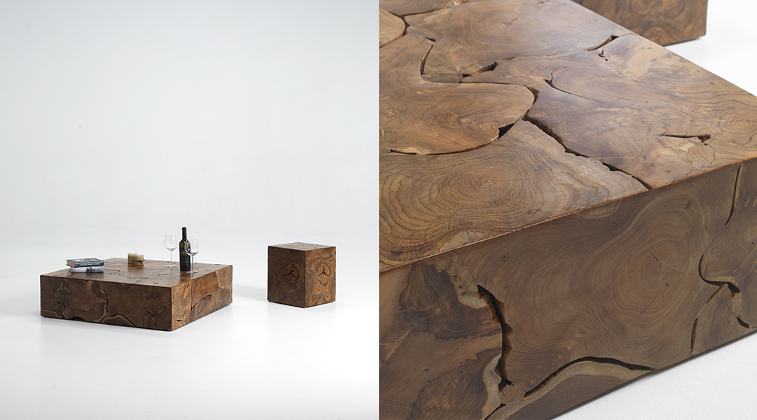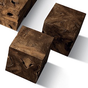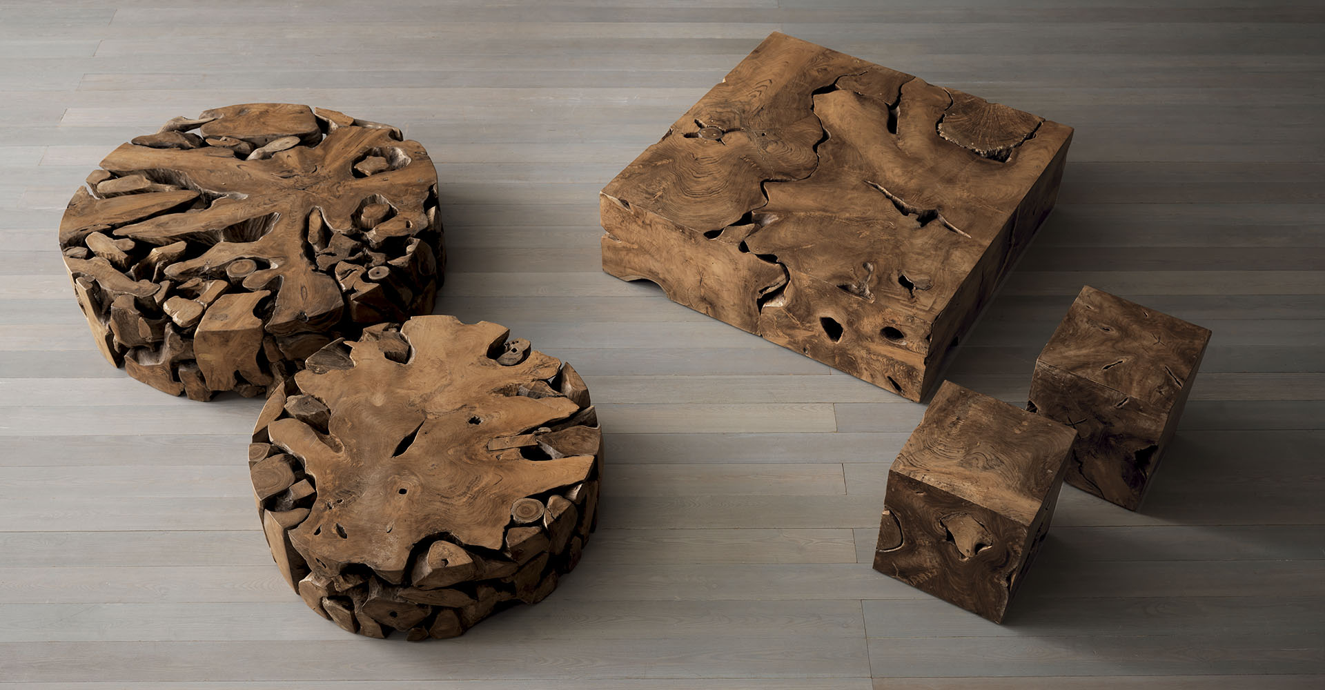 Handcrafted entirely of teak root with dark golden-yellow and brown hues, this striking coffee table represents the pure artistic essence of nature. The timber root, sanded down and polished with wax, creates unique geometrical shapes that contrast with the irregularity of the interior grain. A one-of-a-kind by nature, this striking coffee table can be combined in sets of different sizes to complement any style of furniture, effortlessly playing on the contrast between the fluid lines of the wood and the organic shape of the root.