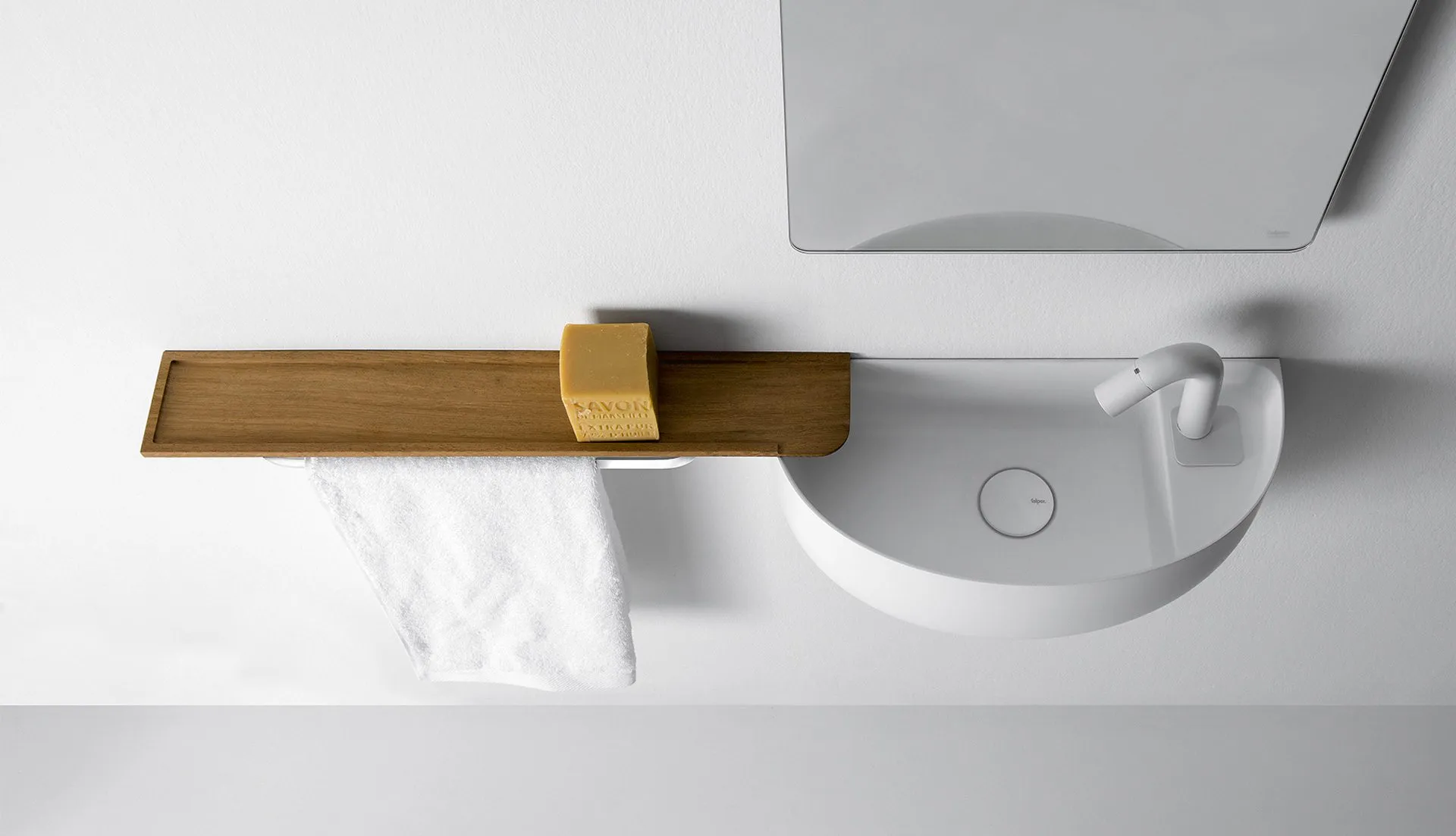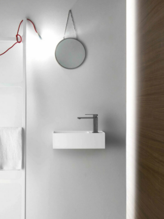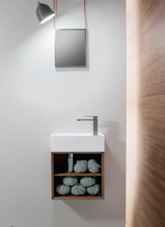Mobile bagno porta lavabo con cassetto, top integrato e lavabo da appoggio, dimensioni da 140cm a 160cm. Piano integrato in Fenix con taglio a 45°. Lavabo in Cristalplant? Bio Active opaco modello Ciotola con copri piletta in Cristalplant? Bio Active, disponibile nelle versioni centrato, a destra e a sinistra del mobile. Basi del mobile con frontali e fianchi a 45°. I cassetti sono completamente estraibili e sono disponibili con maniglie opzionali a gola o premi apri.