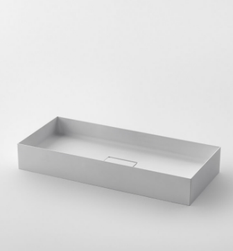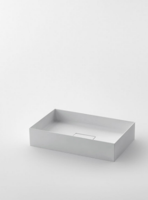Mobile bagno porta lavabo con cassetto, top integrato e lavabo da appoggio, dimensioni da 140cm a 160cm. Piano integrato in Fenix con taglio a 45°. Lavabo in Cristalplant? Bio Active opaco modello Ciotola con copri piletta in Cristalplant? Bio Active, disponibile nelle versioni centrato, a destra e a sinistra del mobile. Basi del mobile con frontali e fianchi a 45°. I cassetti sono completamente estraibili e sono disponibili con maniglie opzionali a gola o premi apri.