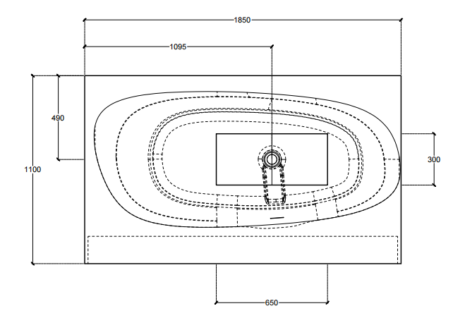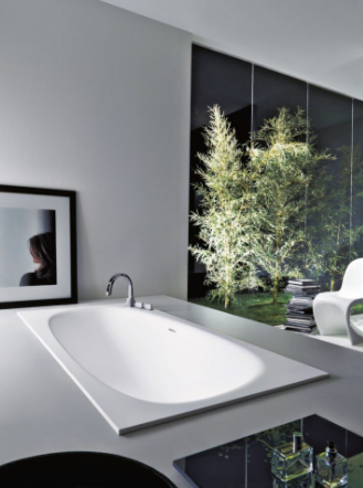 Vasca da bagno freestanding centrostanza in Cristalplant con dimensioni 174cm per 82cm. Porta salviette e bordo inferiore del basamento in metallo. Copri piletta in Cristalplant.