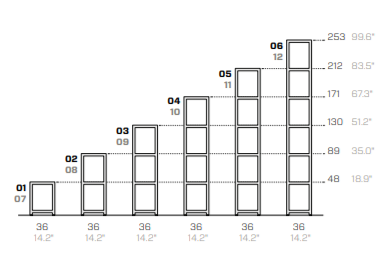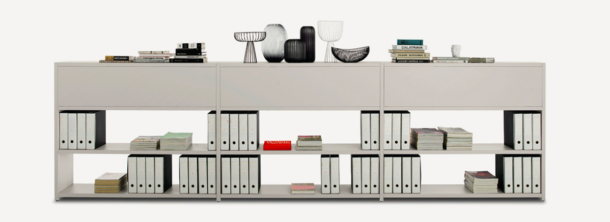 Il sistema di librerie Frame si caratterizza per la razionalità delle linee ortogonali e per le infinite possibilità compositive: tre lunghezze di ripiani su cinque altezze, dove poter disporre in libertà schienali, fianchi e vani con ante a ribalta e rialza, sempre in luce al telaio. Il sistema, inoltre, è stato disegnato senza forature e viti di giunzione in vista, così da lasciare spazio alla pulizia formale di ogni dettaglio.