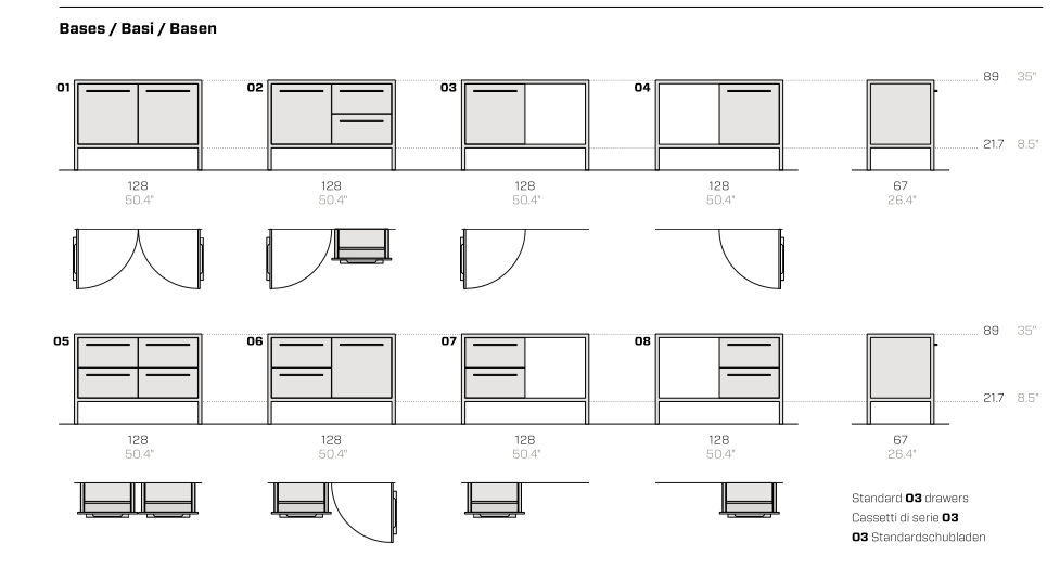 I banconi Frame sono proposti con top in acciaio Barazza, in Fenix NTM o in metallo verniciato. Il telaio, in tubo quadro saldato, è sempre in vista ed è garanzia di grande solidità.