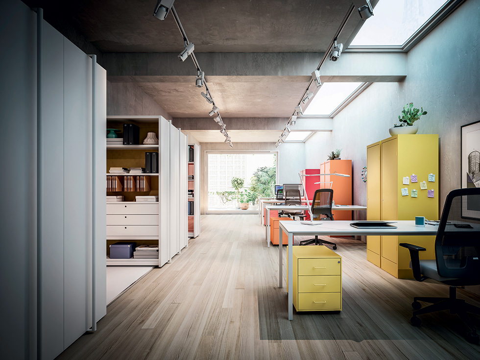 Vela è caratterizzato da comode maniglie a tutta altezza, che scandiscono il ritmo dei moduli. L’essenzialità e l’ergonomia lo rendono ideale in uffici e studi professionali, valorizzando l’ambiente in cui viene collocato. Disponibile anche con ponte, può essere posizionato in modalità freestanding, per il libero accesso da entrambi i lati e diventando, al contempo, un comodo divisorio in soluzioni open space.