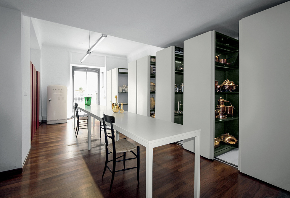 La raffinatezza delle forme e la cura dei dettagli tecnici rendono Binaria una soluzione adatta in ambienti pubblici e privati anche per nuove ed inusuali destinazioni d’uso. L’ergonomica presa maniglia dei moduli, ottenuta per sottrazione dei volumi, è la caratteristica estetica che differenzia questo sistema dalle altre collezioni presenti oggi sul mercato. Nella versione con ponte, Binaria diventa una piccola architettura da interni, protagonista al centro della scena.