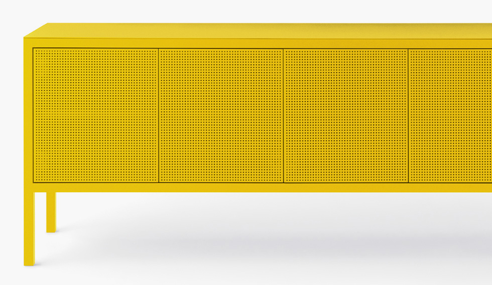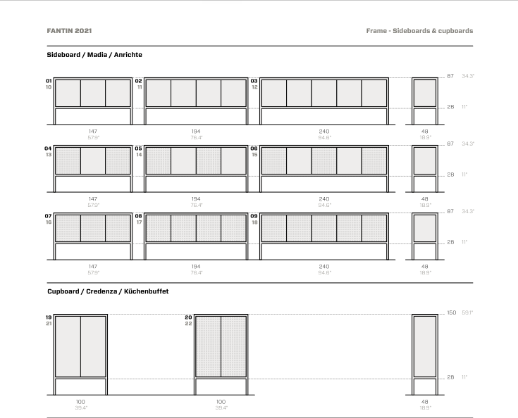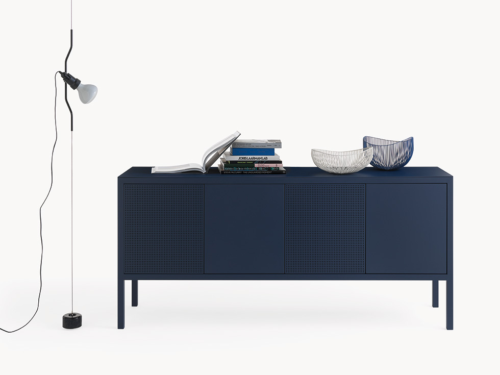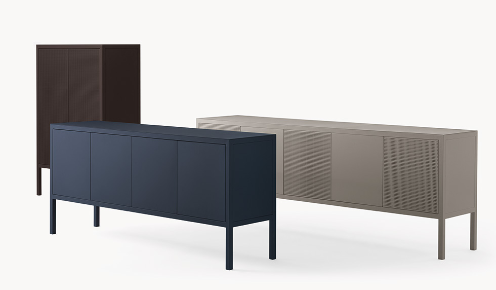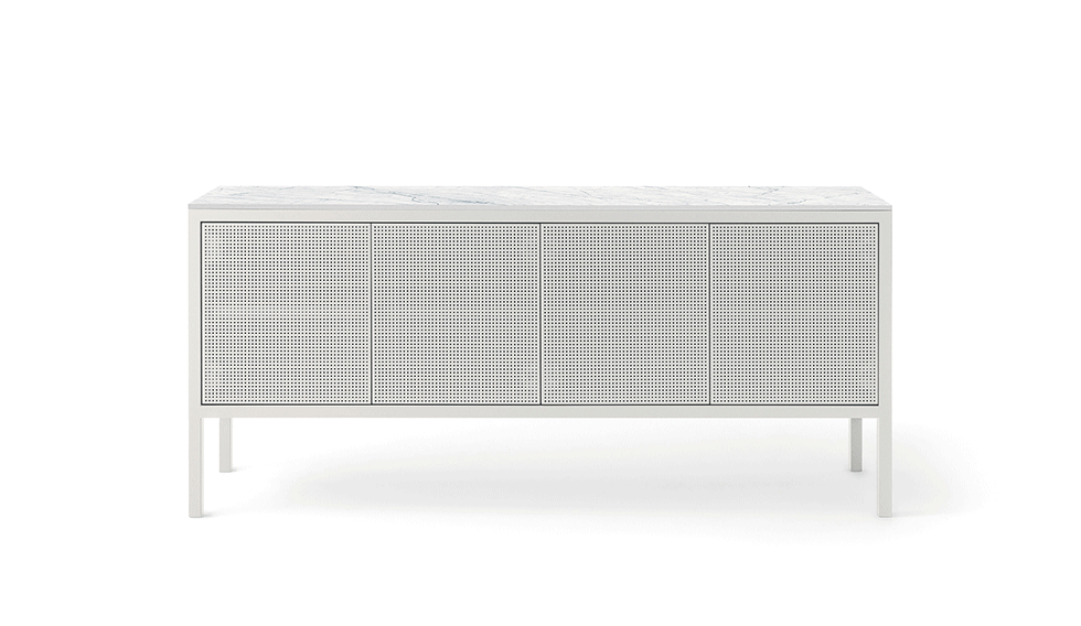 La collezione di madie e credenze Frame è contraddistinta da un design minimale nel quale il telaio in tubo quadro è sempre in vista. Il top, sottile pochi millimetri, è in metallo così come le due versioni di ante – piena e forata – che permettono diverse composizioni sulla varie modularità e che rendono la collezione adatta in qualsiasi contesto, insieme alla sorprendente scelta fra le 40 finiture Fantin.