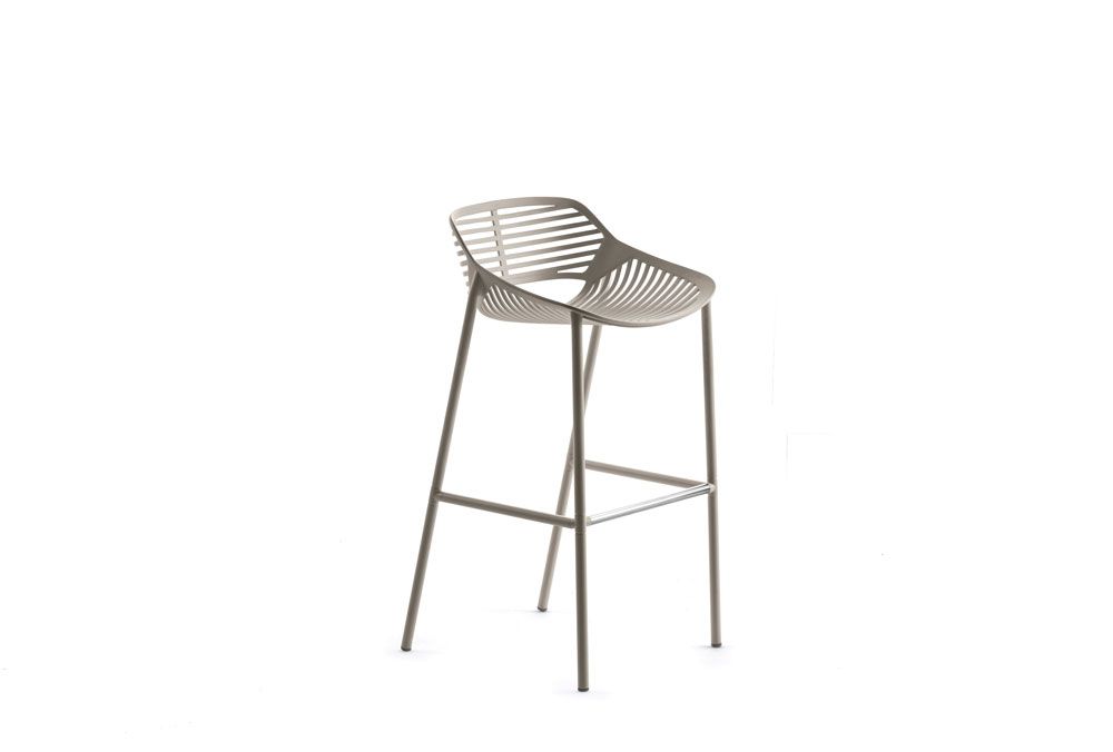 Made in die cast and extruded aluminium, the Niwa modern outdoor chairs and stools collection stands out for its crisp, clean-cut silhouettes, which can be appreciated in the "bare" version or with the addition of cushions. Its chromatic versatility means it can blend in with any taste and setting, in both residential and contract sectors.