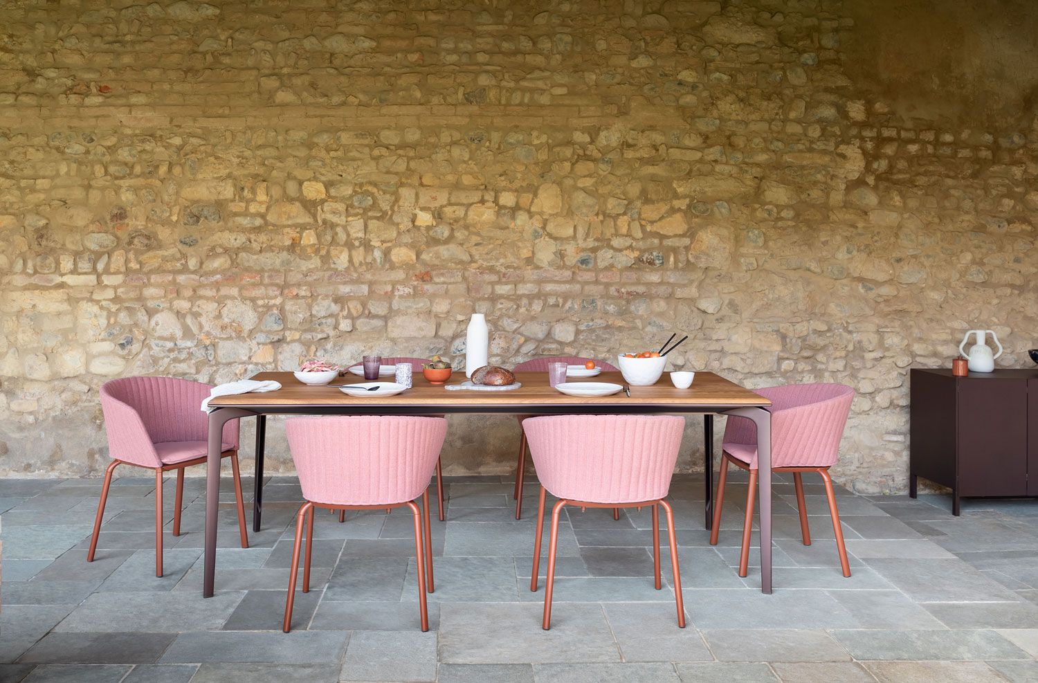 A collection of tables characterised by customisation. The entire AllSize collection is customisable, in terms of both height and the size of the top. AllSize’s geometric and rigorous style is brought out by the table tops that feature porcelain-stoneware, wood or a stone effect finish and rest on a painted aluminium base, creating an interesting contrast between materials. The legs, frame and supports are made from extruded aluminium. A standard version is also available, featuring a painted aluminium top.
