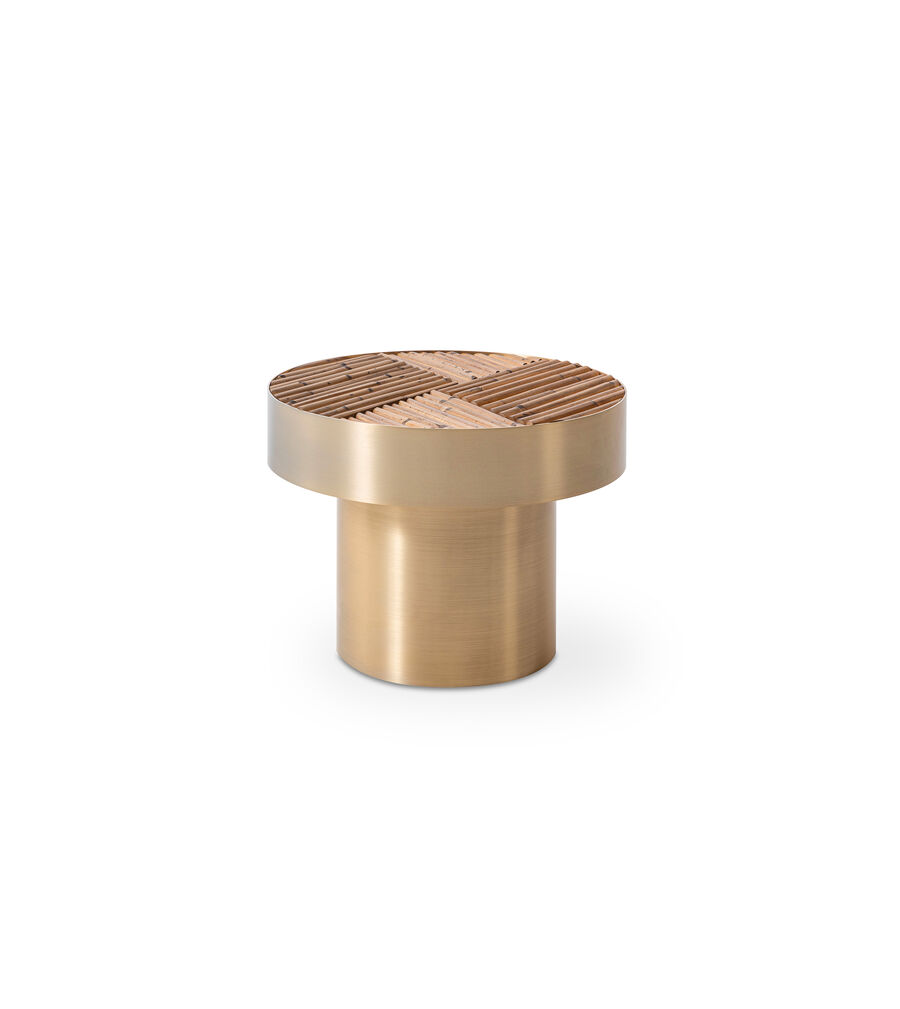The Astuccio Canes series of side and coffee tables by Chiara Andreatti are the ideal addition to bedroom and living room decors. Available in round and oval versions, their innovative design combines natural wood and bamboo elements with brushed gold finishes in an artful and stylish contrast of materials. With large, medium and small options to choose from, they can be grouped as a set or strategically placed in different zones of the home.