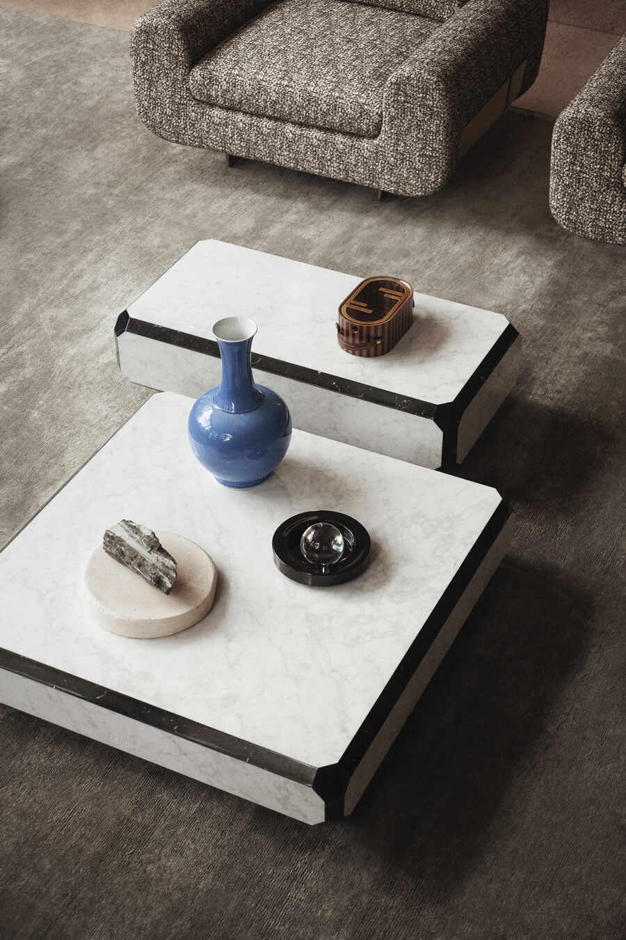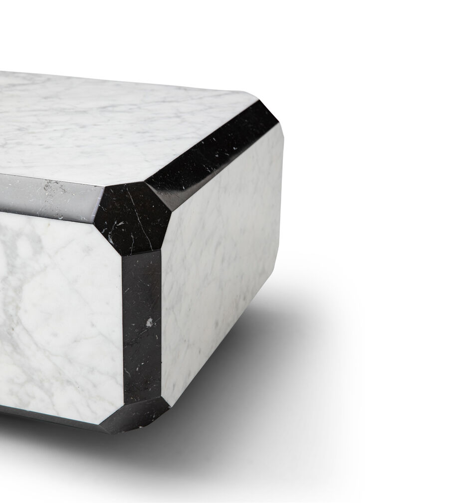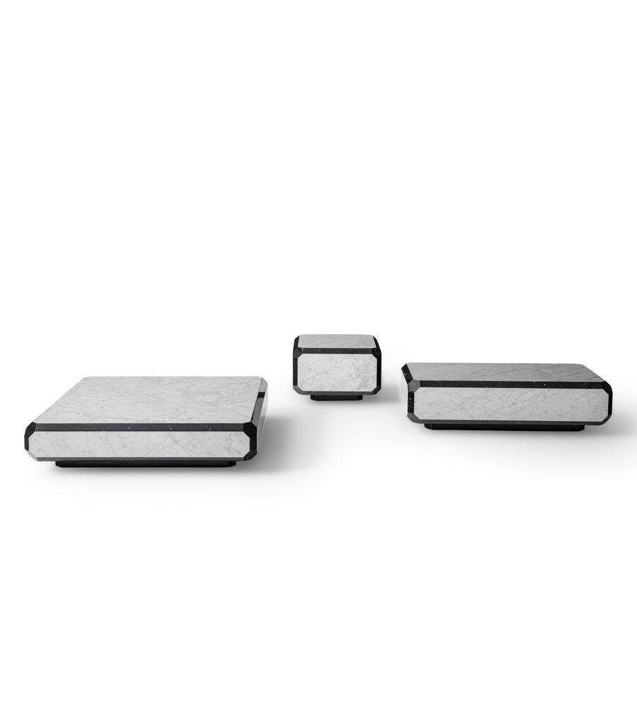 Bold geometric forms are the hallmark style of the Tarsia series of coffee tables, made entirely from polished marble. Striking contoured borders in contrasting colours of stone inject elegant drama to create sophisticated, modern interiors. Available in three sizes, to offer a solution for every space and layout.