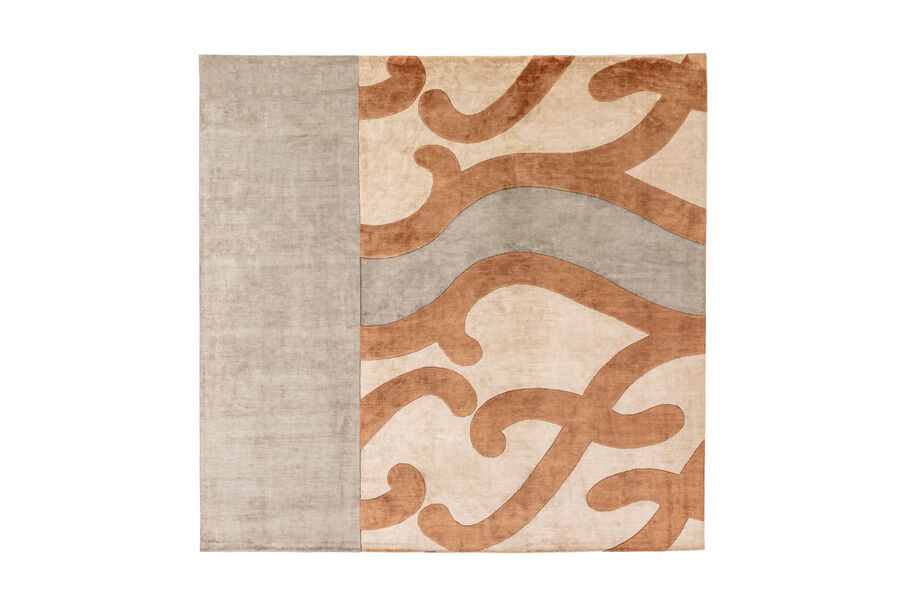 Hand-knotted in stunning natural silk, the Big Karl rug features a soft weave that is wonderfully tactile. The sinuous curves of the Karligraphy logo designed by Karl Lagerfeld intertwine in a pleasing combination of modern, harmonious tones. Available in three colour schemes: elegant light and dark blue, iconic brown and beige or the refined tones of burgundy and green.