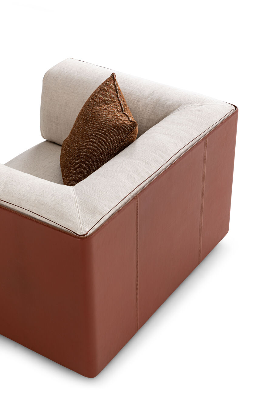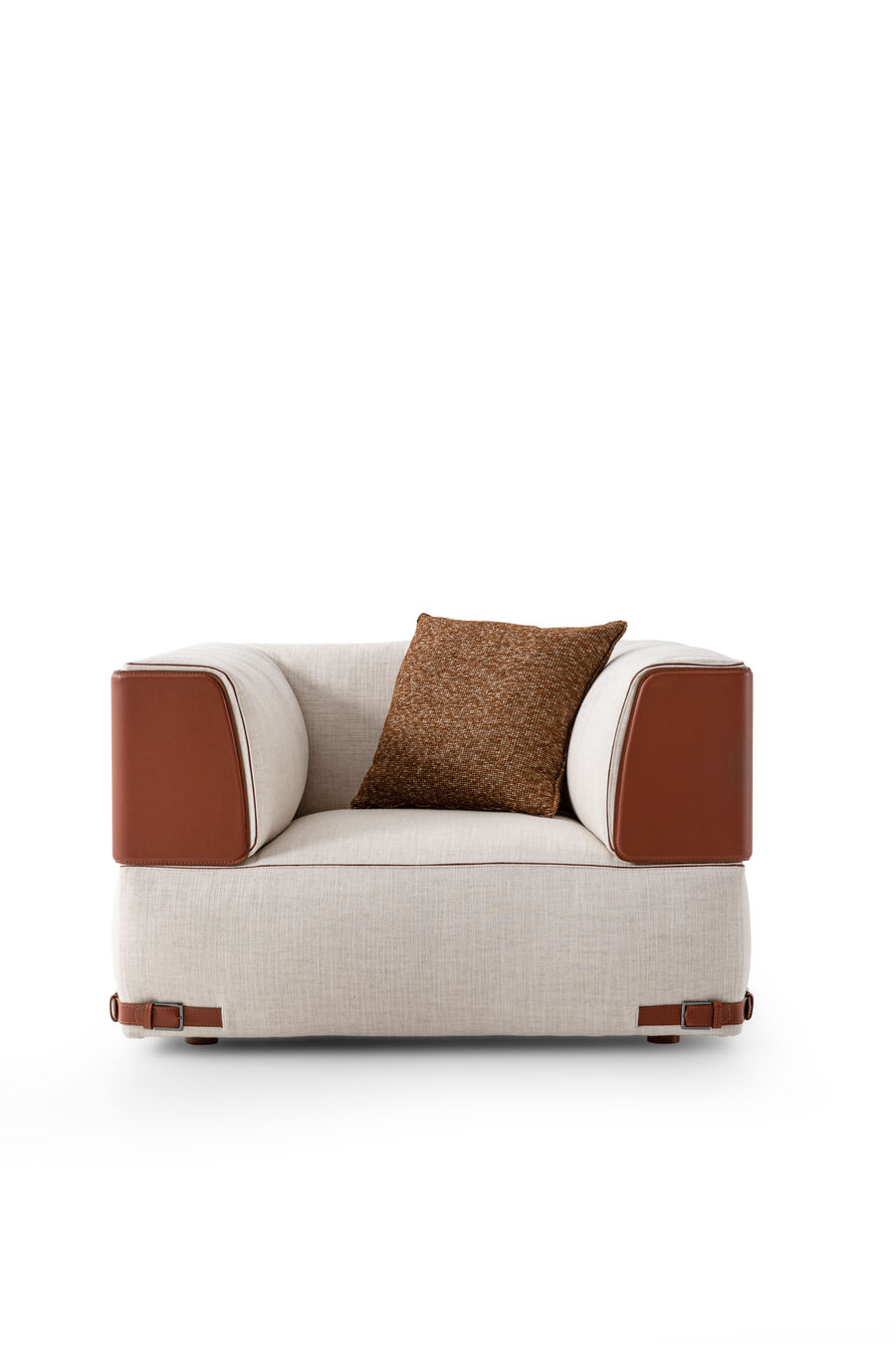 With its pleasing harmony of volumes and ample, inviting form, the soft, contemporary design of the Soho armchair continues to stand the test of time. In this revisited version, raw-cut leather edging echoes the unmistakable savoir-faire of the Maison and natural shades of fabric and leather are embellished with steel buckles, a meticulous detail that creates a modern yet intimate vibe. Every piece in the Soho modular collection is designed to combine with each other to offer blissful moments of relaxation.