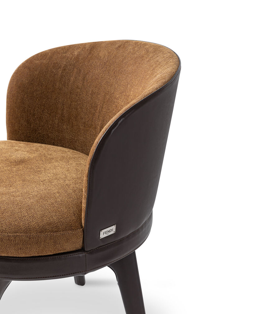 The Doyle chair adds a classic, elegant touch with its solid wooden frame in a leather or wood finish, upholstered seat and backrest and metal feet. Designed for everyday comfort, it can be customised with fabric or leather to create an understated, versatile piece for any living space.