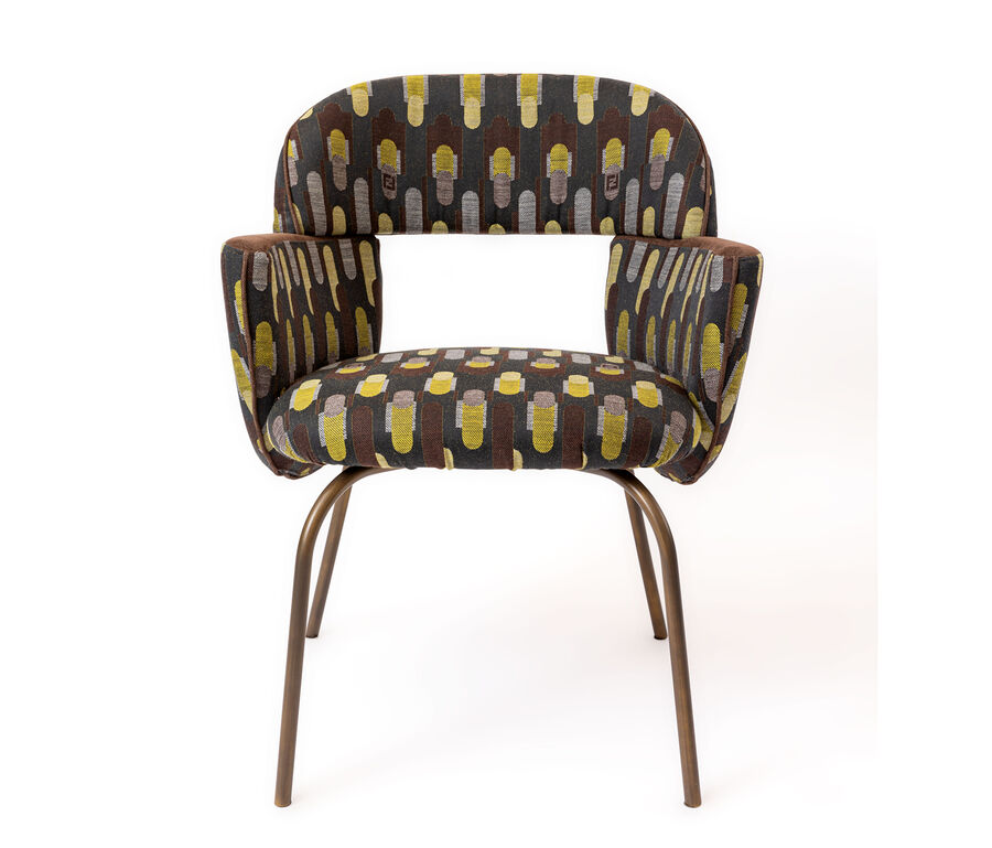 The harmonious form that defines the Pecan chair by Atelier O? is accentuated by the perfectly-pitched combination of materials, with jacquard fabrics and soft leather complementing the almost-severe aspect of the metal base. With its invitingly soft padding, the Pecan chair offers outstanding comfort and contained dimensions, making it ideal for cosy nooks, while able to command attention in larger spaces.