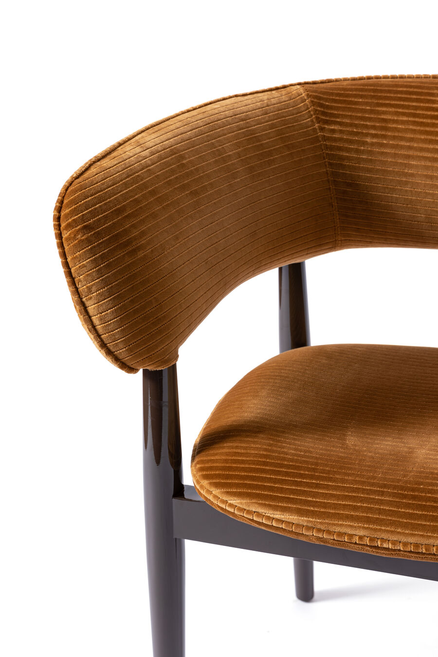 The robust construction and elegant aesthetic of the Virgola chair epitomise the creative flair of designer Chiara Andreatti. The solid oak frame coordinates perfectly with the embracing form of the back and the padded seat, showcasing its softness and inviting guests to make themselves comfortable. Virgola is suitable as a dining chair or to place at your desk or worktop in a home office.