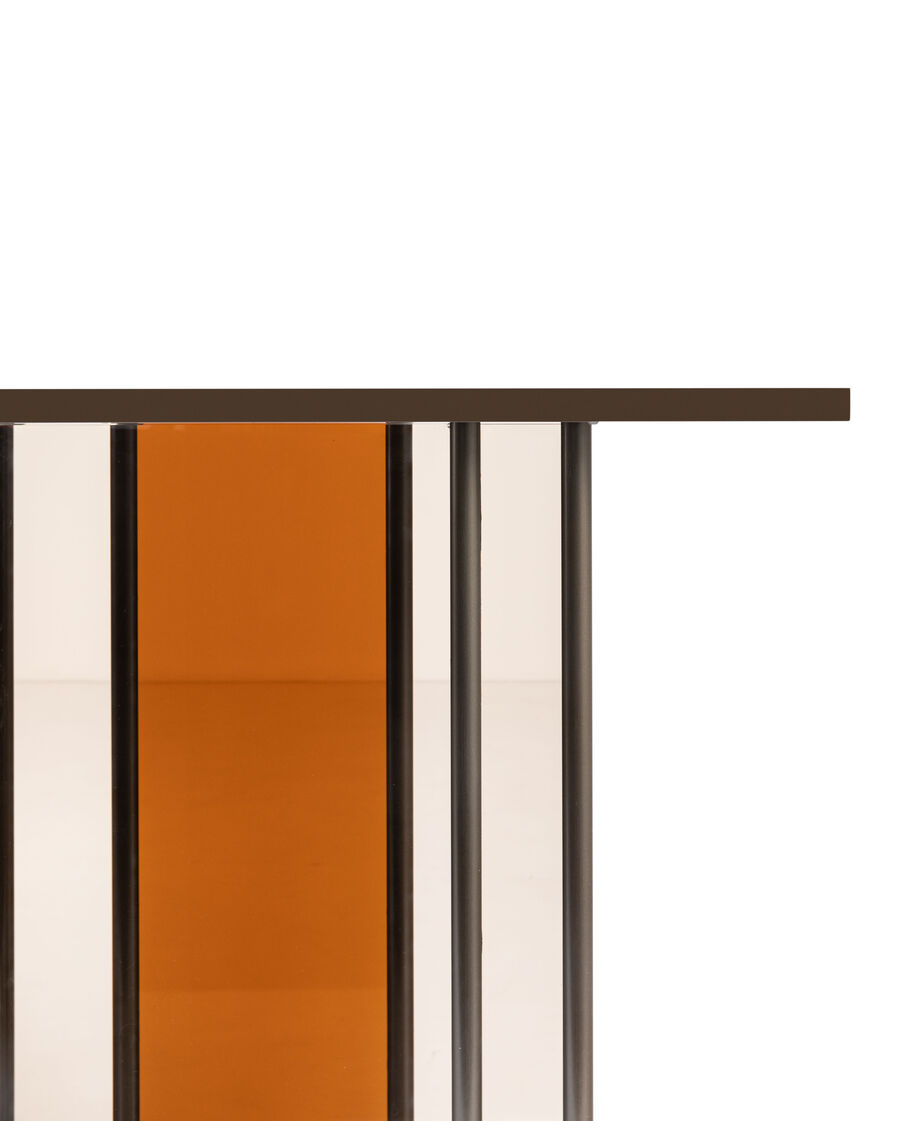 A combination of overlapping textures defines the aesthetic of the Blurred console. The essential geometric structure is expressed through a refined see-through effect, achieved by a combination of various layers of glass that merge with metallic tubes, creating a visually impactful design. Exuding lightness and personality, this console will enrich the main living spaces or an entryway.