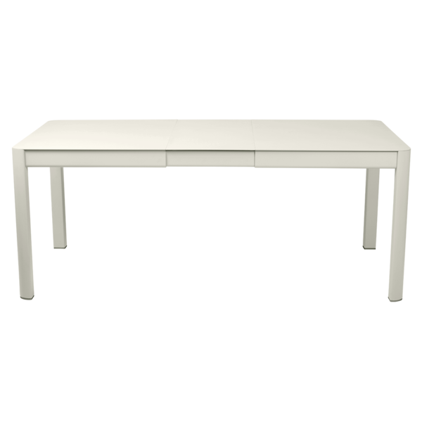 Avec ou sans son allonge, la table métallique Ribambelle peut accueillir 6 ou 8 convives sans aucun encombrement des pieds. Son système télescopique avec glissières à roulements est ultra pratique pour insérer l'allonge et offrir 2 places supplémentaires en un tour de main. Ultra pratique aussi le coffre de rangement dissimulé sous la table pour y stocker cette allonge.