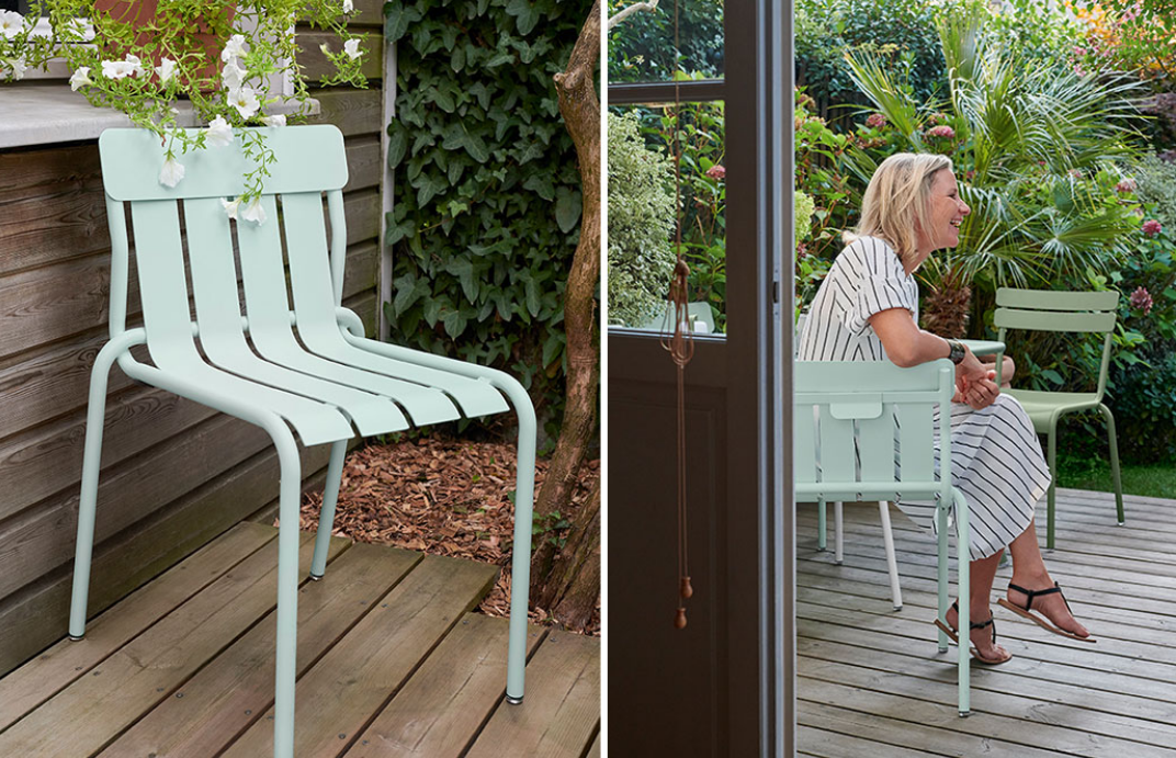 Designée par Matali Crasset, à l’origine pour pour les Mini R -restaurants rapides du Crous- pour favoriser l’échange et le partage, facile à déplacer d’une table à l’autre grace à sa légèreté et à sa poignée intégrée dans le dossier, Stripe s’invite maintenant dans tous les extérieurs