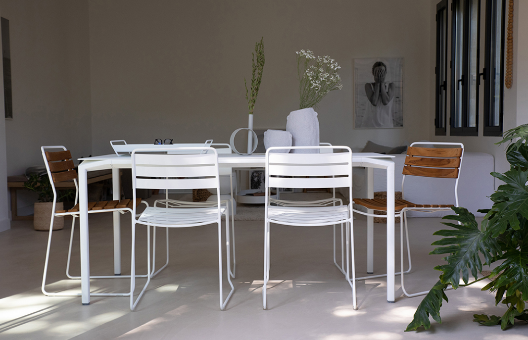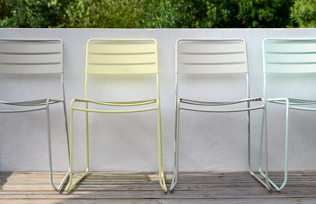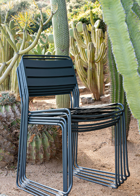 Une structure filaire associée à des lattes fines offrent à cette chaise un dessin très précis, simple et élégant. Cette chaise métal joue la convivialité et le confort avec un encombrement minimum.