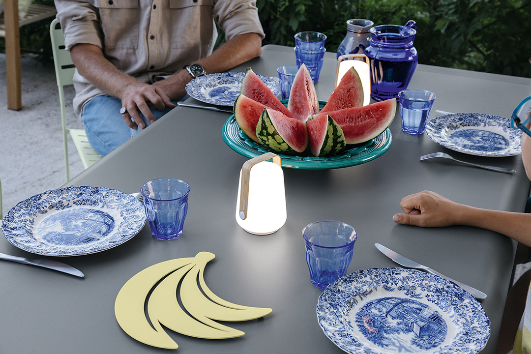 Le dessous de plat Banane complète la collection Envie d’Ailleurs. Il apporte une touche à la fois colorée et exotique à votre table extérieure et intérieure ! Fabriqué en France, composé d’acier et recouvert d’une peinture poudre sans solvant, 100% recyclée et recyclable, ce dessous de plat original résiste aux U.V. Idéal pour un usage 100% outdoor ! On aime ses couleurs issues du nuancier Fermob qui lui permettent de se mixer parfaitement avec le mobilier outdoor. A combiner selon les envies déco.