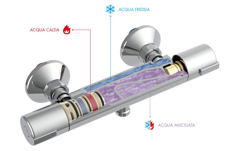Un miscelatore termostatico non si limita a miscelare l'acqua calda e fredda erogata dall'impianto alla temperatura desiderata, ma la mantiene costante per l'intera durata della doccia.