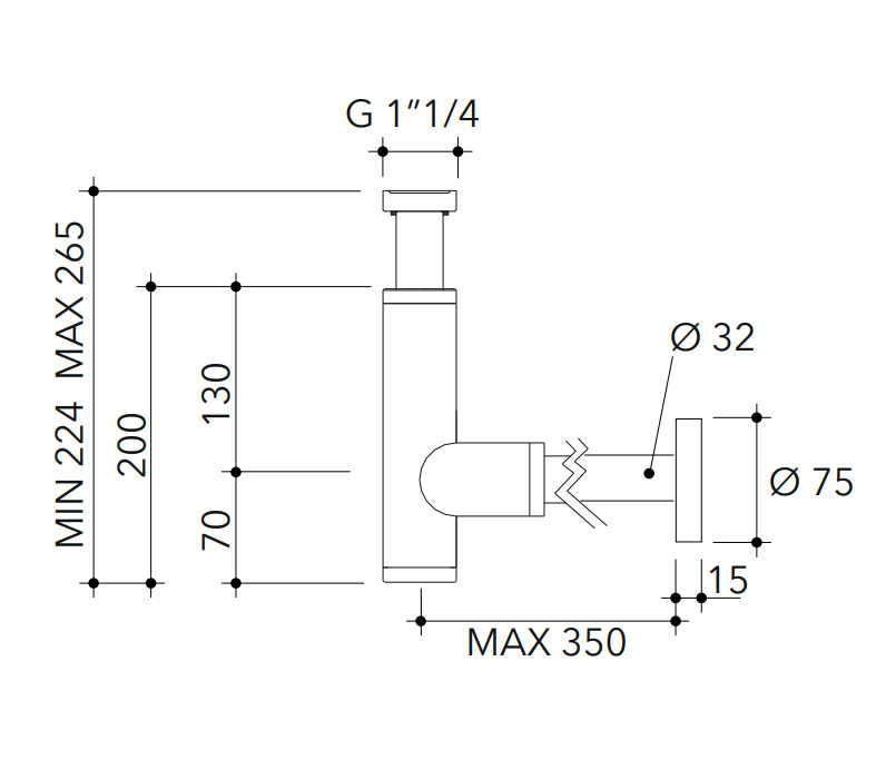 Stainless steel basin siphon