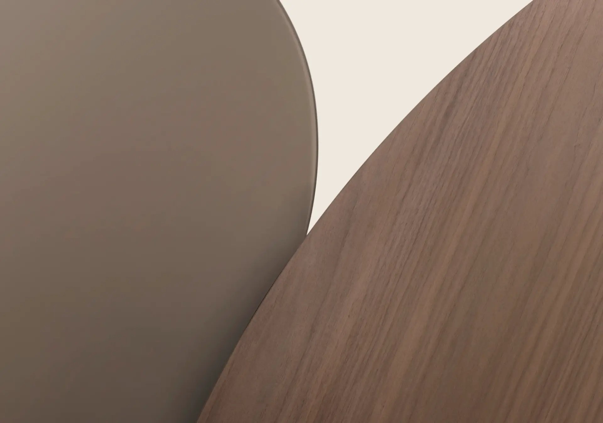While the design is based on a single-material concept, in addition to veneered wood, the tabletop is also available in back-painted glass, in a palette of sophisticated colors.