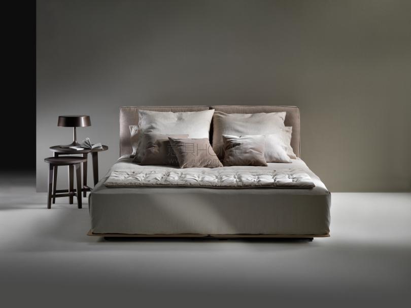 Grandemare床與同名沙發一樣,秉承低調的設計理念,但采用了豐富的設計方案,包括隱藏式的方案,使之呈現出卓越的品質。 寬大的床頭板呈幾何造型,線條柔和,放置在風格嚴謹的床板上,床板為木制,表面覆蓋皮革。 床頭板的面料可采用織物或真皮。 覆蓋面料均可拆卸,并配有同色或撞色對比的羅緞滾邊。 金屬邊框經過環氧粉末烤箱上釉,相對于皮革平板位置更靠后,令Grandemare床呈現出懸浮的觀感。