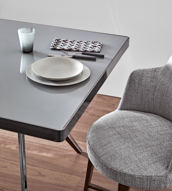 Zefiro餐桌系列款式多樣,特點(diǎn)在于輕松而富有當(dāng)代性的風(fēng)格。 Zefiro是一款特別百搭的桌子,尺寸和材質(zhì)選擇多樣,可融入任何環(huán)境,平添風(fēng)格與優(yōu)雅,滿(mǎn)足最多元化的需求。 纖細(xì)的壓鑄鋁材桌腿,有磨砂、鍍鉻、磨光、黑鉻、香檳色以及白色和黑色漆面等表面處理可選,為Zefiro桌子帶來(lái)輕盈與動(dòng)感。 桌面有圓形、方形、橢圓形和長(zhǎng)方形等款式,尺寸多樣,可選用多種顏色的卡納萊托胡桃木或歐洲白蠟?zāi)捐傎N板,或多款名貴大理石,或色彩優(yōu)雅的背面上漆玻璃配精致的金屬框架。