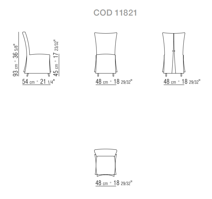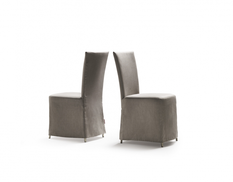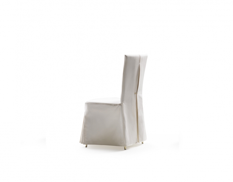 纖薄細長,充滿女性魅力,Eva充分繼承了椅套椅子的傳統。 纖巧的金屬結構填充著延展性聚氨酯,表面覆蓋雙層保護面料,保證最佳的舒適性。 椅套面料有兩個版本:“sari”剪裁的特點是更簡潔洗練,而“chemisier”剪裁則帶有精致的皺褶底料,以紐扣扣上,令座椅的后部更有特色,為Eva椅子賦予了更具裝飾性的魅力。 椅腳同樣精致,帶有高貴的黃銅腳尖。