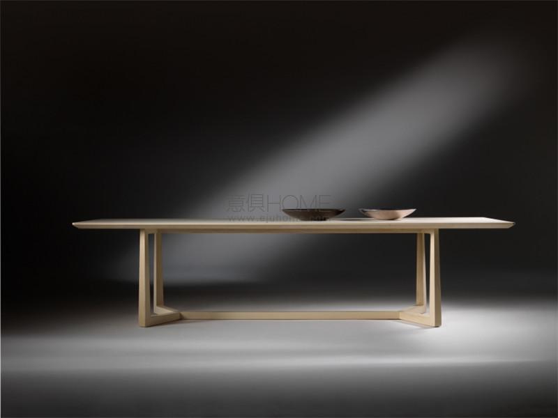 Jiff桌子設計純粹,做工細節考究,選擇了單一材質,體現為溫暖而富有表現力的木材。 只有木材一種材質,可以是卡納萊托胡桃木和歐洲白蠟木,有多種顏色可選,結構采用實木,邊緣圓潤的桌面采用鑲貼木板。 四個桌腿在底座匯合,設計效果獨特,與桌面形成橫向的平行。