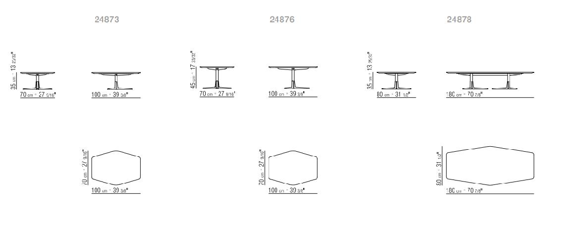 Sveva茶幾的優雅金屬底座與其同名扶手椅一樣具有特色,別具一格的桌面形狀賦予其鮮明的個性。 除了最常見的圓形桌面外,Sveva茶幾的桌面還可提供獨特的不同尺寸的六邊形,可搭配成別具一格的疊加造型。 珍貴的材料搭配:金屬底座提供有磨砂、鍍鉻、磨光、黑鉻與香檳色可選,可搭配考究的木質、精致的漆藝和高貴的大理石桌面。