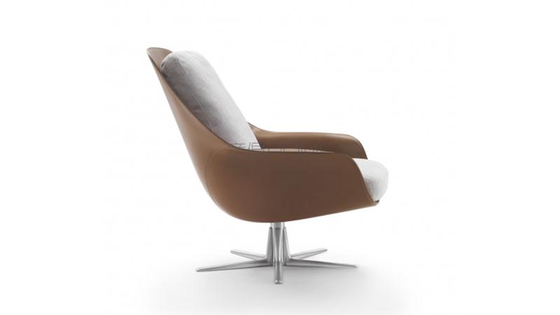 Sveva扶手椅獨特的特征在它優雅的側影中完全得到展示,讓人直接感受到它的飽滿性和舒適性。彎曲的外表由硬結構聚氨酯制成,真皮表面,坐墊松軟,鵝毛填充靠背。在四爪或五爪版本里可以看到可轉動壓鑄鋁底座,后者專為商務領域設計,滿足商務人士需求。 支撐底座可做的精加工工藝包括:拉絲金屬、鍍鉻、拋光,鍍黑鉻和香檳色。 外表可以使用9種不同顏色的真皮,坐墊外包可以使用Flexform系列專屬布料和皮制成,兩者之間可創造出許多搭配方案。 Sveva單人沙發可配同名擱腳凳。支撐底座的設計為一系列不同尺寸的小桌子的設計帶來了靈感,融合了考究的材質,精致的漆藝和珍貴的大理石。 Sveva單人沙發雅致的線條讓它可以輕松和各系列的長沙發搭配在一起,無論是在居家環境下還是在招待客人使用時,都顯得非常和諧。