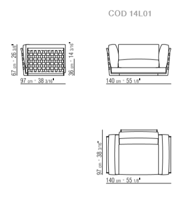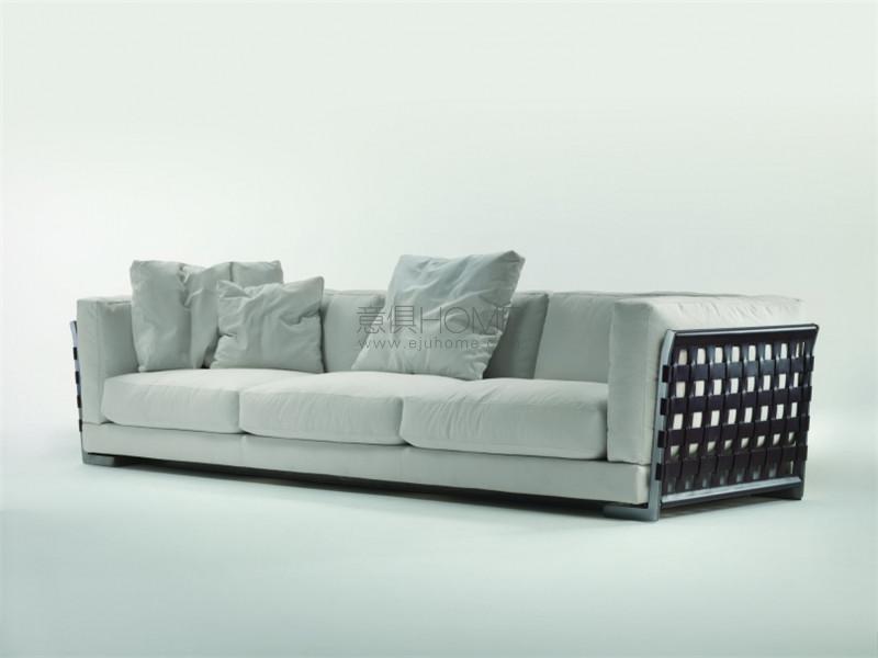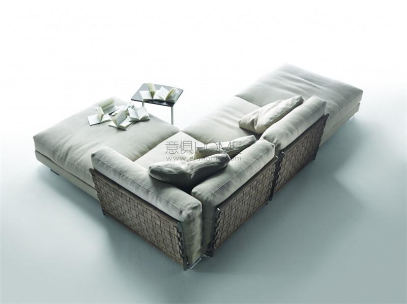 Cestone沙發(fā)被設計為客廳中央的理想擺設。 需要加強的是沙發(fā)的背面與側面,這些部分通常不具有特別顯要的特點。而在Cestone沙發(fā)身上,背面和側面均由金屬框架構成,表面覆蓋著編織皮革。不規(guī)則紋理編織有兩個款式可選,采用了兩種不同寬度的皮條。編織可以更密實,形成緊致的表面,也可以更疏松,隱約露出填充料的覆蓋面料。