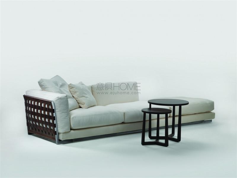 Cestone沙發(fā)可搭配同名茶幾,面板采用卡納萊托胡桃木或歐洲白蠟木,呈現多種顏色,與皮革的溫暖形成迷人的材質對比。