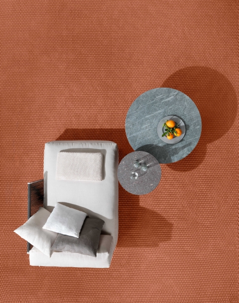 Colorado地毯采用特別的手工編織塑料制作,這種材料來自PET塑料瓶的循環(huán)再用。這是一種防水透氣的材料,使得Colorado地毯可放置于戶外環(huán)境,例如陽光房和露臺(tái)。Colorado地毯為定制產(chǎn)品,該系列具有多種顏色,可與戶外系列的織物顏色一致。