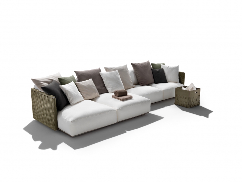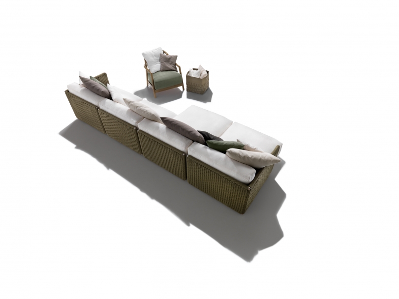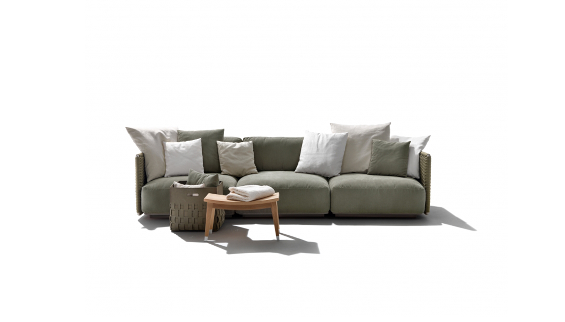 Eddy務求為露臺和陽光房帶來優雅有格調的布置。 Eddy沙發的獨特標志是316奧氏體不銹鋼結構,整個表面覆蓋著考究的聚丙烯纖維全手工編織,有一系列精致的色彩,包括天然色調、波爾多色和橄欖綠色。 沙發的底座采用航海復合板,鋼架結構也提供環氧粉末噴漆處理的版本,可選白色、卡其綠、酒紅色和磨光。 沙發下方是一個316奧氏體鋼框架,帶有尼龍橡膠支腳。 與可見的輕盈編織結構相對照的,是寬大豐厚的填充坐墊與靠背。為了確保最佳的戶外表現,所有填料都覆蓋了特別的防水透氣椅套,而豐富的面料選擇則可保證出色的抵御能力,不僅可應對天氣因素和紫外線,還可耐受氯和鹽的侵蝕。 強烈建議使用專門的防水椅套,保持Eddy沙發的良好狀態,盡量維持原狀。