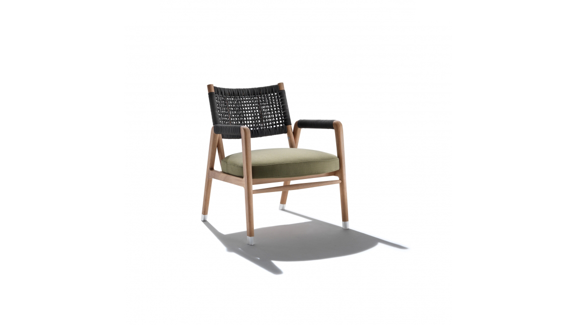 Ortigia Outdoor是同名座椅系列中的戶外版本,以當代手法重新解讀古典-資產階級的氣質。 Ortigia單人沙發的結構完全采用大綠柄桑芯材制造,加工工藝呼應著博大的木匠傳統,提供天然版本或白漆或灰色版本。通過銑削 壓鑄合金 支腳和尼龍橡膠墊放在地面。 坐墊帶有填充料,靠墊則覆蓋著精致的手工編織面料,有聚丙烯繩索或聚氨酯橡膠版本,兩款均提供優雅色彩選擇。 Ortigia系列包括一款帶扶手和一款不帶扶手的單人沙發,可以搭配腳墊和午餐椅。