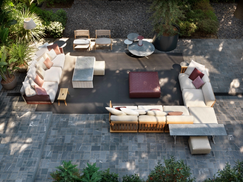 Zante是一套專(zhuān)為戶(hù)外環(huán)境設(shè)計(jì)的座椅系列,提供兩種深度,在組合方面具有極佳的靈活性。它用途廣泛,不同元件的拆卸非常簡(jiǎn)易,在季末或有需要時(shí),可以疊加收藏于隱蔽之處。 大綠柄桑木對(duì)天氣因素具有高度的防御能力,其與生俱來(lái)的美感與品質(zhì),啟發(fā)了這個(gè)戶(hù)外座椅系列的構(gòu)思,一如Flexform的優(yōu)秀傳統(tǒng),結(jié)合了低調(diào)優(yōu)雅與高度舒適,用以裝飾露臺(tái)與陽(yáng)光房,可與室內(nèi)環(huán)境保持絕對(duì)的一致。 Zante沙發(fā)的底座完全采用Okumè木航海復(fù)合板制作,帶有透氣孔,讓椅墊獲得良好通風(fēng)。上部的大綠柄桑木鑲板,搭配完全以大綠柄桑實(shí)木芯材制作的扶手與靠背結(jié)構(gòu),獨(dú)有不規(guī)則條紋和手工鑲嵌。沙發(fā)下方是一個(gè)316奧氏體鋼框架,由 尼龍支腳托離地面。隨著時(shí)間推移,大綠柄桑木會(huì)變得“滄桑”,逐漸變成特別的灰色。正是這種精致色調(diào),啟發(fā)了Flexform大綠柄桑木的表面處理工藝,除了灰色外,還提供天然和白漆的版本。 Zante是一款休息而包容的沙發(fā):坐墊與椅墊都帶有豐厚的填充料。為了確保最佳的戶(hù)外表現(xiàn),所有填料都覆蓋了特別的防水透氣椅套,豐富的面料選擇可保證出色的抵御能力,不僅可應(yīng)對(duì)天氣因素和紫外線,還可耐受氯和鹽的侵蝕。強(qiáng)烈建議使用專(zhuān)門(mén)的防水椅套,保持Zante沙發(fā)的良好狀態(tài),盡量維持原狀。