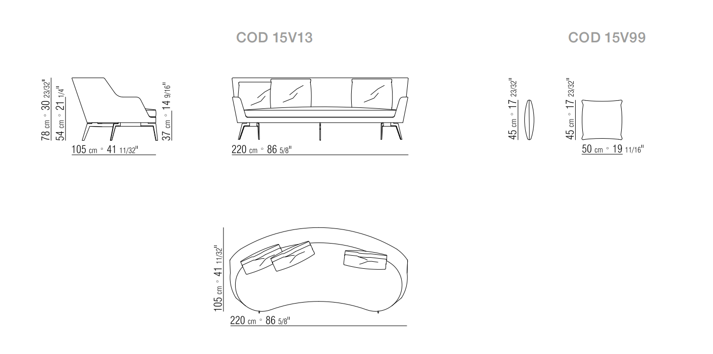 Guscio沙發有效結合了優雅與品質,呈現出溫暖包裹的線條與無懈可擊的做工,這些特點讓它適合裝飾家居與公共空間,包括休閑區、經歷辦公室或氣氛溫暖親密的精品商店。 其結構以結構性延展性聚氨酯外殼構成,坐墊填充了鵝絨,并加入了不變形材料插件。 Guscio沙發特有的考究美學語言,也體現于底座的設計之中,有不同顏色的卡納萊托胡桃木或歐洲白蠟木實木,或不同表面處理工藝的金屬可選。 Guscio沙發的尺寸選擇包括:寬度128厘米款,帶實木或金屬底座;或寬度220厘米款,只有金屬底座可選。