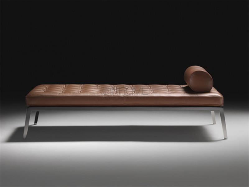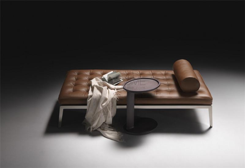 Magi長凳于2014年設計,向品牌的標志性經典產品Magister沙發致敬。 這款優雅的長凳采用了特別的釘扣工藝:傳統的古典絎縫紐扣在這里被更現代的兩孔扣眼取代。這一考究的做工細節,突出了絎縫的線條特點與品牌在復雜加工上的精湛技藝。 簡潔的金屬底座把長凳托離地面,可搭配一個實用的滾筒靠枕。