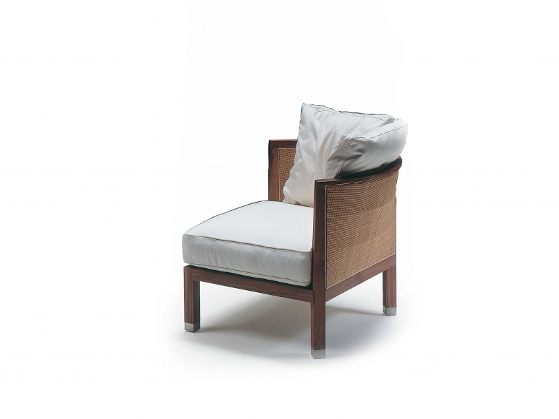 Rosetta扶手椅造型別具一格。 扶手與椅背勾勒出的角度,引導輕松的坐姿。 結構采用卡納萊托胡桃木或歐洲白蠟木實木,有多種優雅色彩可選,并采用了燈芯草編織件,為Rosetta扶手椅賦予了清新輕快的氣質。 搭配兩張以上Rosetta扶手椅,可構成一個親密精致的談話角。
