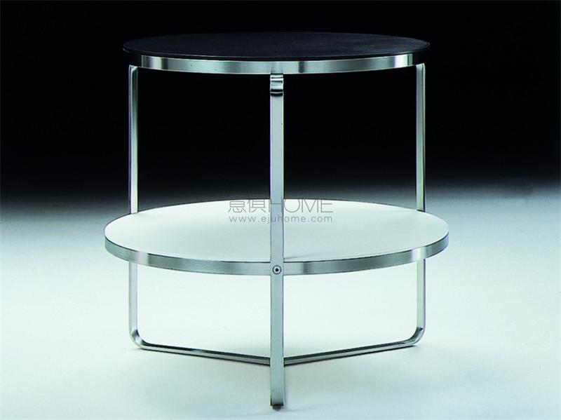 這是一款實用的茶幾,設計雋永,靈感源自包豪斯學派。 金屬結構表面處理工藝有鍍鉻、磨砂、磨光、黑鉻與香檳色可選,突出了接合處的螺絲,彰顯了這款茶幾特有的簡潔嚴謹設計。 圓桌版本有兩層擱物桌面,方桌版本則只有一層,均可采用卡納萊托胡桃木或歐洲白蠟木制造,有多款顏色可選,或可選用色調精致的漆面。