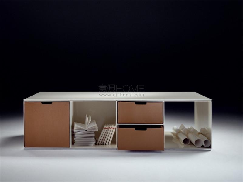 Infinity書架的設計理念在于減法,減少容器,凸顯內容。 Infinity是一個環(huán)氧粉末涂料金屬組合系統(tǒng),有多種色彩選擇,可通過隱形的磨砂不銹鋼螺絲自由疊加組合。 Infinity組合系統(tǒng)可實現(xiàn)無數(shù)種組合可能,構成一個優(yōu)雅的虛實游戲。 Infinity書架可以配置精致實用的皮革收納抽屜,盒子上有一道縫,方便把抽屜從書架中拉出。 精致的材質組合,結合了金屬板的冷峻與皮革的溫暖,造就了這款已成經典的產品的成功。