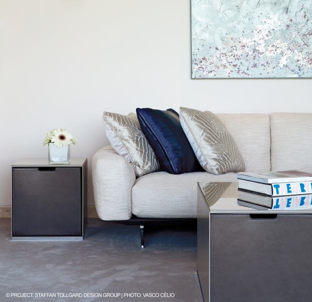 Infinity茶幾身上帶有同名書柜的同一設計理念。 Infinity是一個環氧粉末涂料金屬組合系統,有多種色彩選擇,可通過隱形的磨砂不銹鋼螺絲自由組合。 Infinity系統模組可實現不同的茶幾設計,既可擺在沙發旁邊,也可擺在沙發前面。 金屬壓層板模組可搭配皮革Box盒子,作為實用的收納空間。