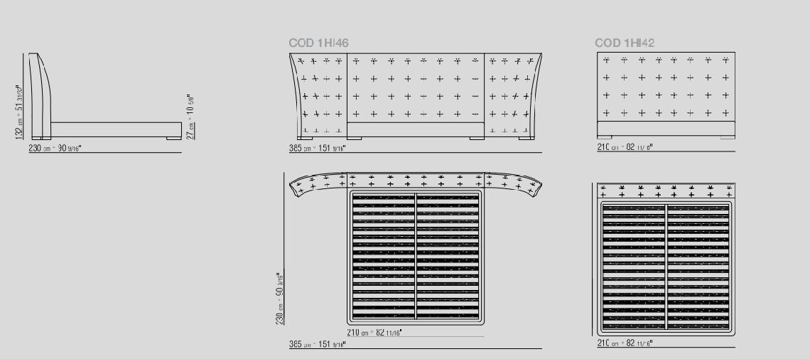 Caress床帶有顯而易見的復古靈感,寬大的床頭板呈圍繞床身的曲線,帶來私密保護的感覺。 床頭板的做工采用了考究的菱格釘扣工藝;同時,相比起傳統的款式,紐扣絎縫更顯輕盈,簡潔現代。 床身下有橡木實木支腳,有天然原色、雞翅木色、烏檀木色、棕色和紅色可選。